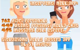 Hey ragazzi!!! Dal 15 novembre 2016 al 31 marzo 2017 abbiamo ottenuto questi risultati! 2060 Downloads; 762 diari personali; 449 utenti presenti nella chat; 495 messaggi agli esperti. È un riscontro importante e siamo grati [...]